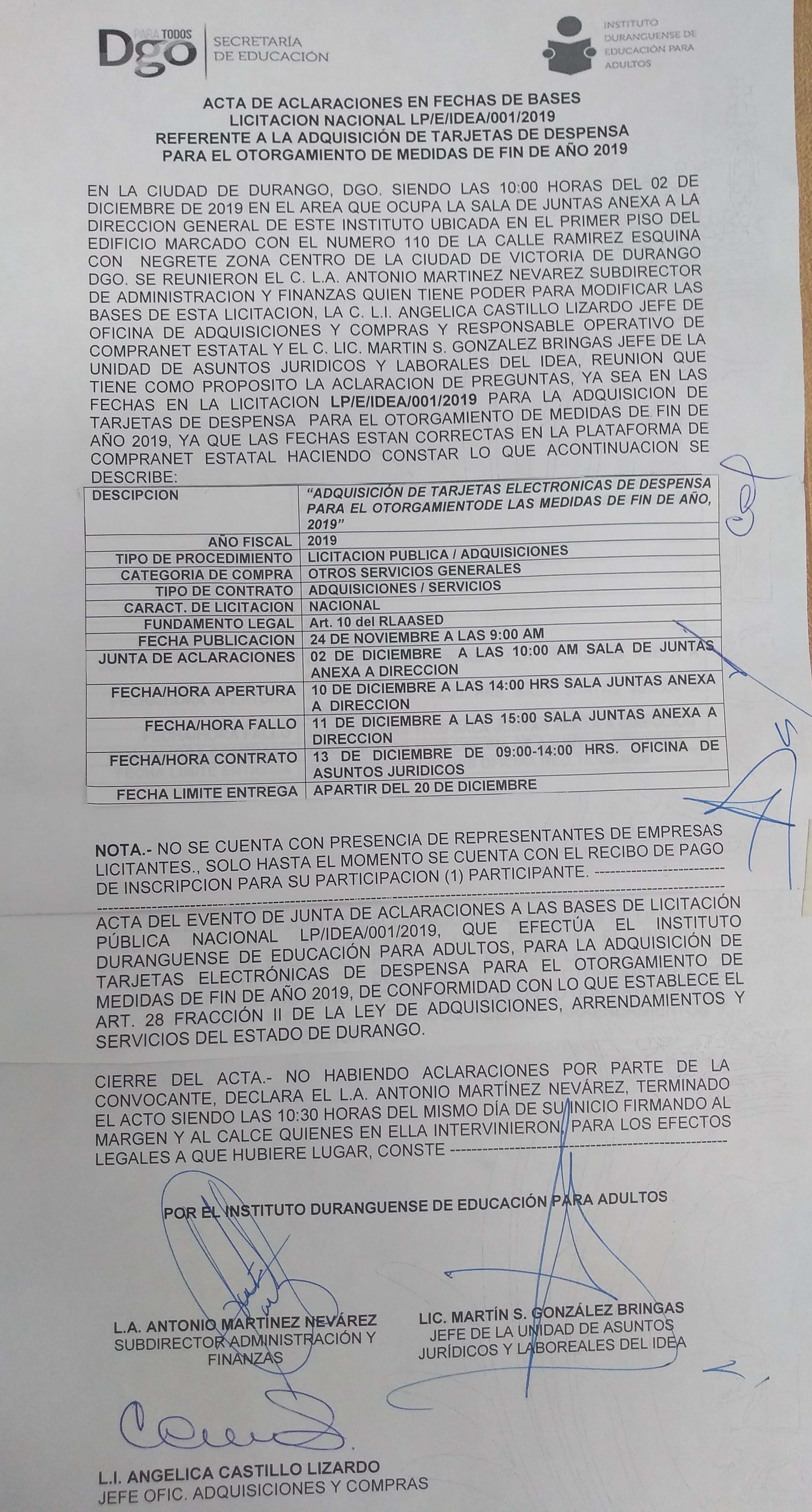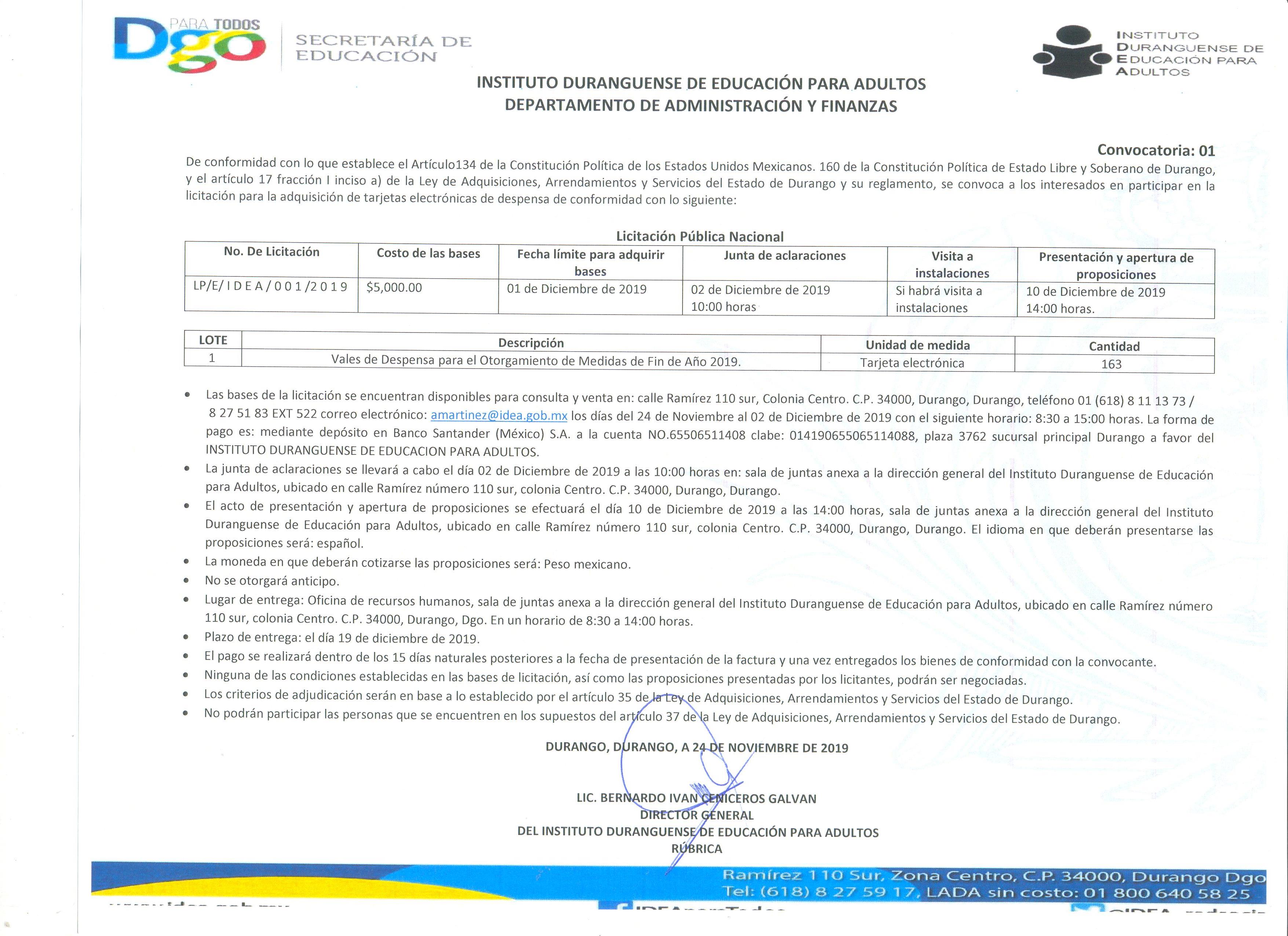 ADQUISICIÓN DE TARJETAS ELECTRÓNICAS DE DESPENSA PARA EL OTORGAMIENTO DE LAS MEDIDAS DE FIN DE AÑO 2019