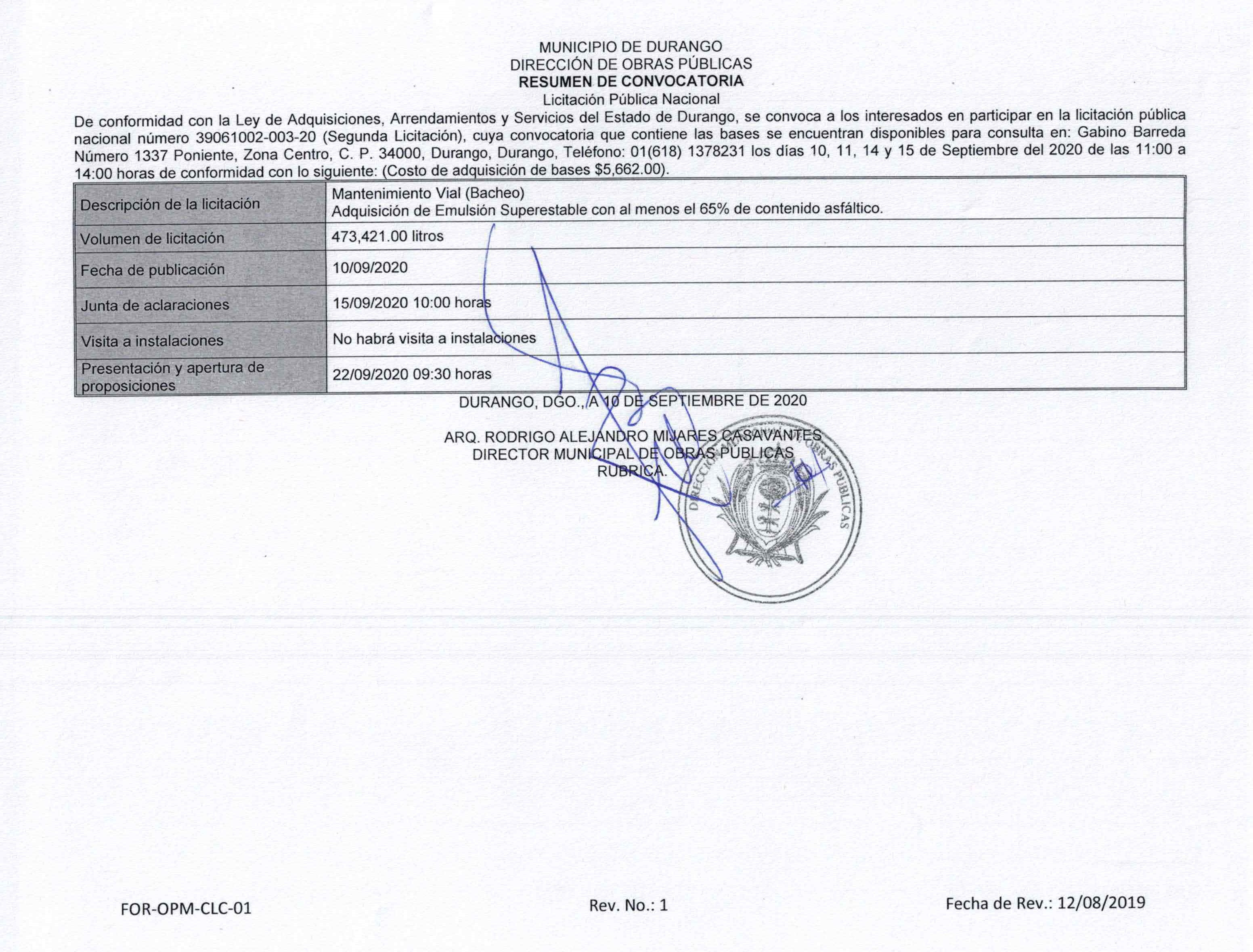39061002-003-20 (SEGUNDA LICITACIÓN)