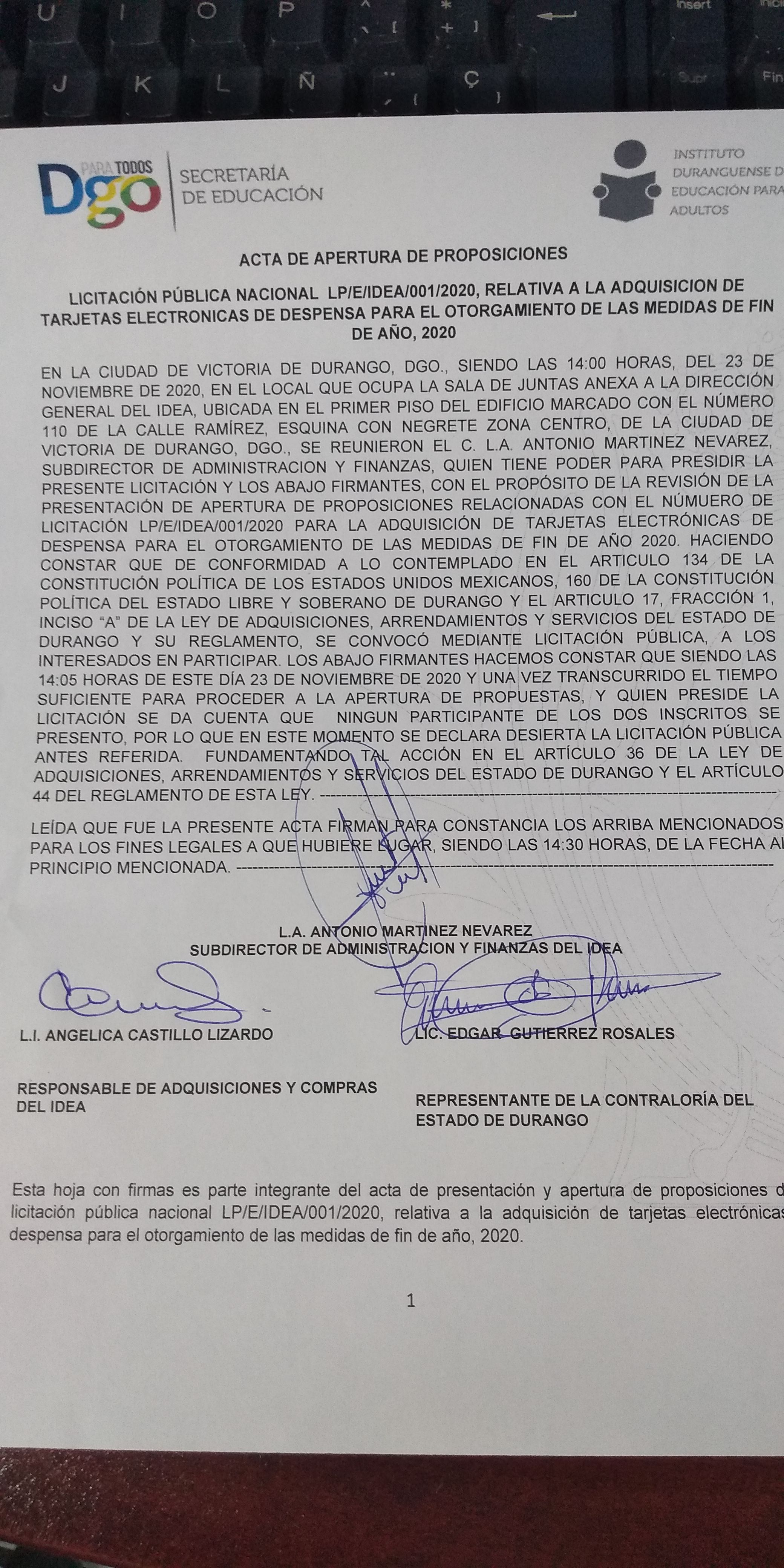 "ADQUISICIÓN DE TARJETAS ELECTRÓNICAS DE DESPENSA PARA EL OTORGAMIENTO DE LAS MEDIDAS DE FIN DE AÑO, 2020"
