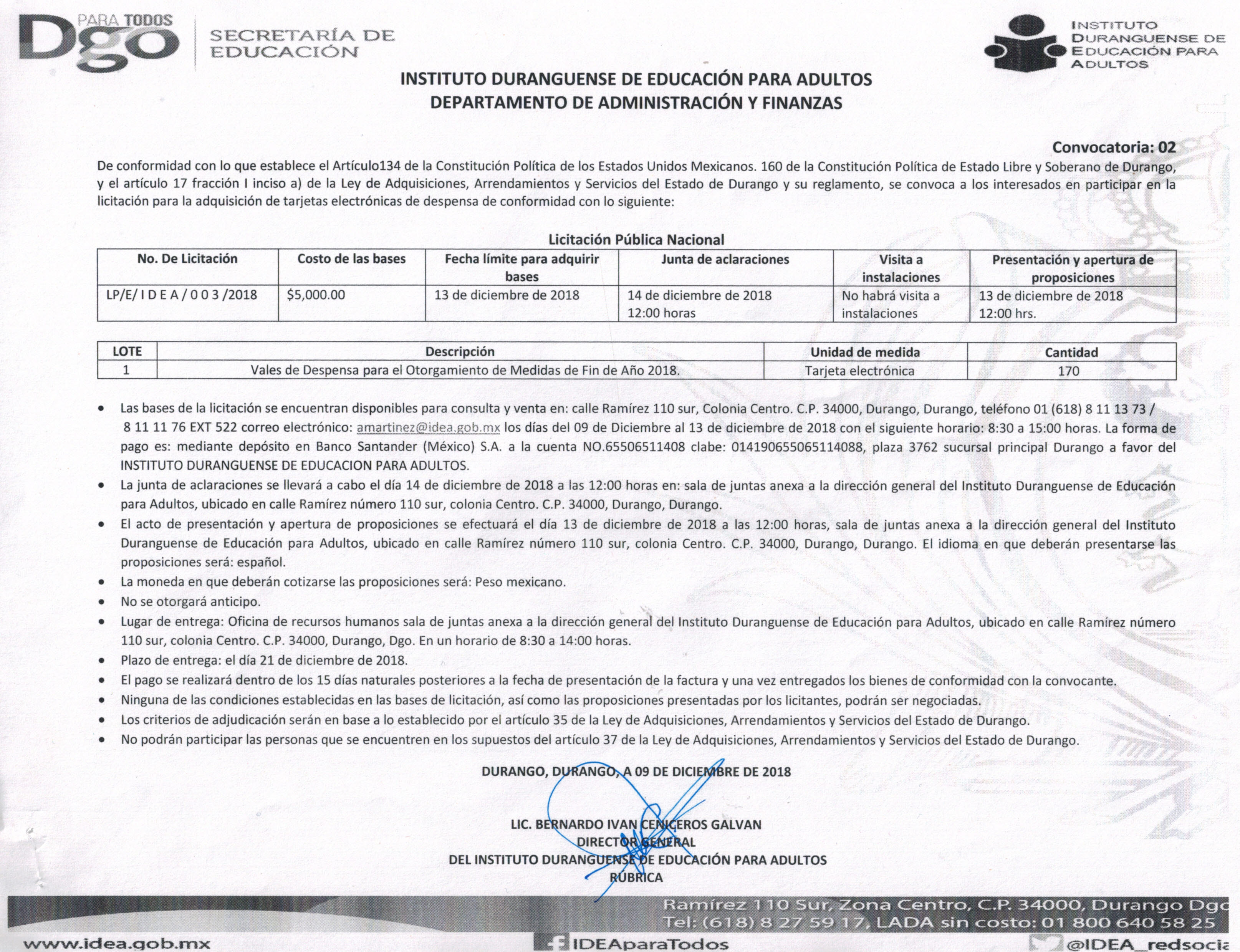 ADQUISICIÓN DE TARJETAS ELECTRÓNICAS DE DESPENSA PARA EL OTORGAMIENTO DE LAS MEDIDAS DE FIN DE AÑO 2018