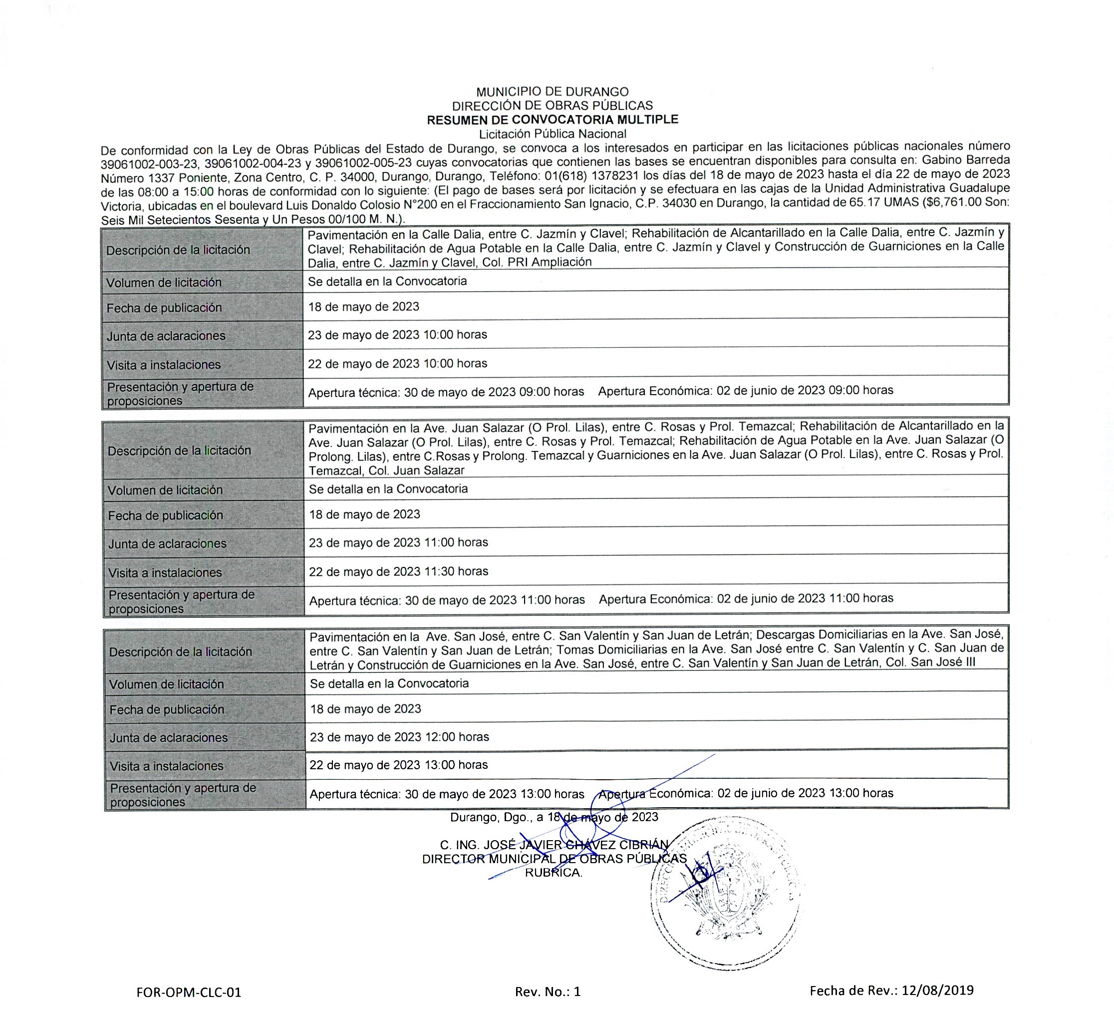 LICITACIONES Y CONTRATOS “LA DEPENDENCIA” SITA EN CALLE GABINO BARREDA NO. 1337 PTE. ZONA CENTRO, EN LA CIUDAD DE DURANGO, DGO.