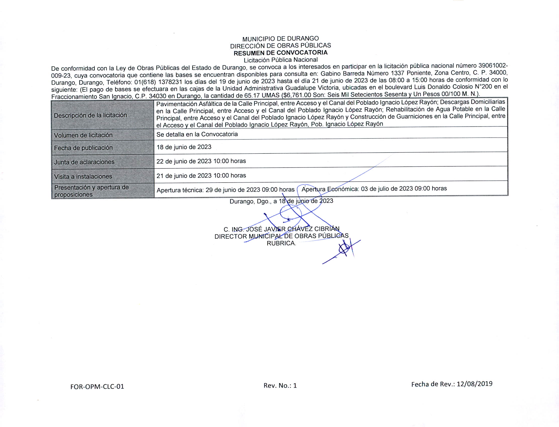 PAVIMENTACIÓN ASFÁLTICA DE LA CALLE PRINCIPAL, ENTRE ACCESO Y EL CANAL DEL POBLADO IGNACIO LÓPEZ RAYÓN; DESCARGAS DOMICILIARIAS EN LA CALLE PRINCIPAL, ENTRE ACCESO Y EL CANAL DEL POBLADO IGNACIO LÓPEZ RAYÓN; REHABILITACIÓN DE AGUA POTABLE EN LA CALLE PRINCIPAL, ENTRE ACCESO Y EL CANAL DEL POBLADO IGNACIO LÓPEZ RAYÓN Y CONSTRUCCIÓN DE GUARNICIONES EN LA CALLE PRINCIPAL, ENTRE EL ACCESO Y EL CANAL DEL POBLADO IGNACIO LÓPEZ RAYÓN, POB. IGNACIO LÓPEZ RAYÓN