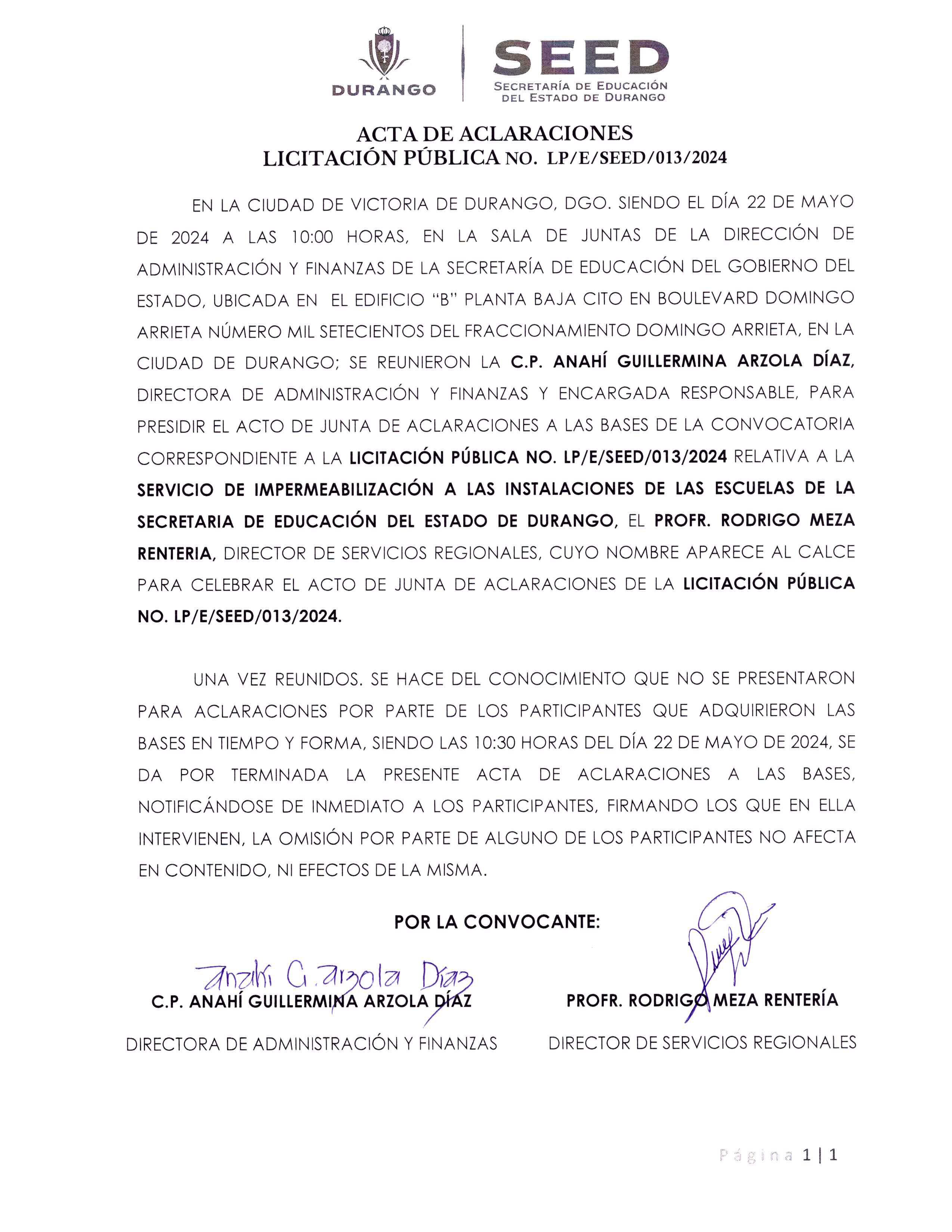 SALA DE JUNTAS DE LA CONVOCANTE, UBICADA EN BOULEVARD DOMINGO ARRIETA NO. 1700, FRACCIONAMIENTO DOMINGO ARRIETA, C.P. 34180, DE ESTA CIUDAD.